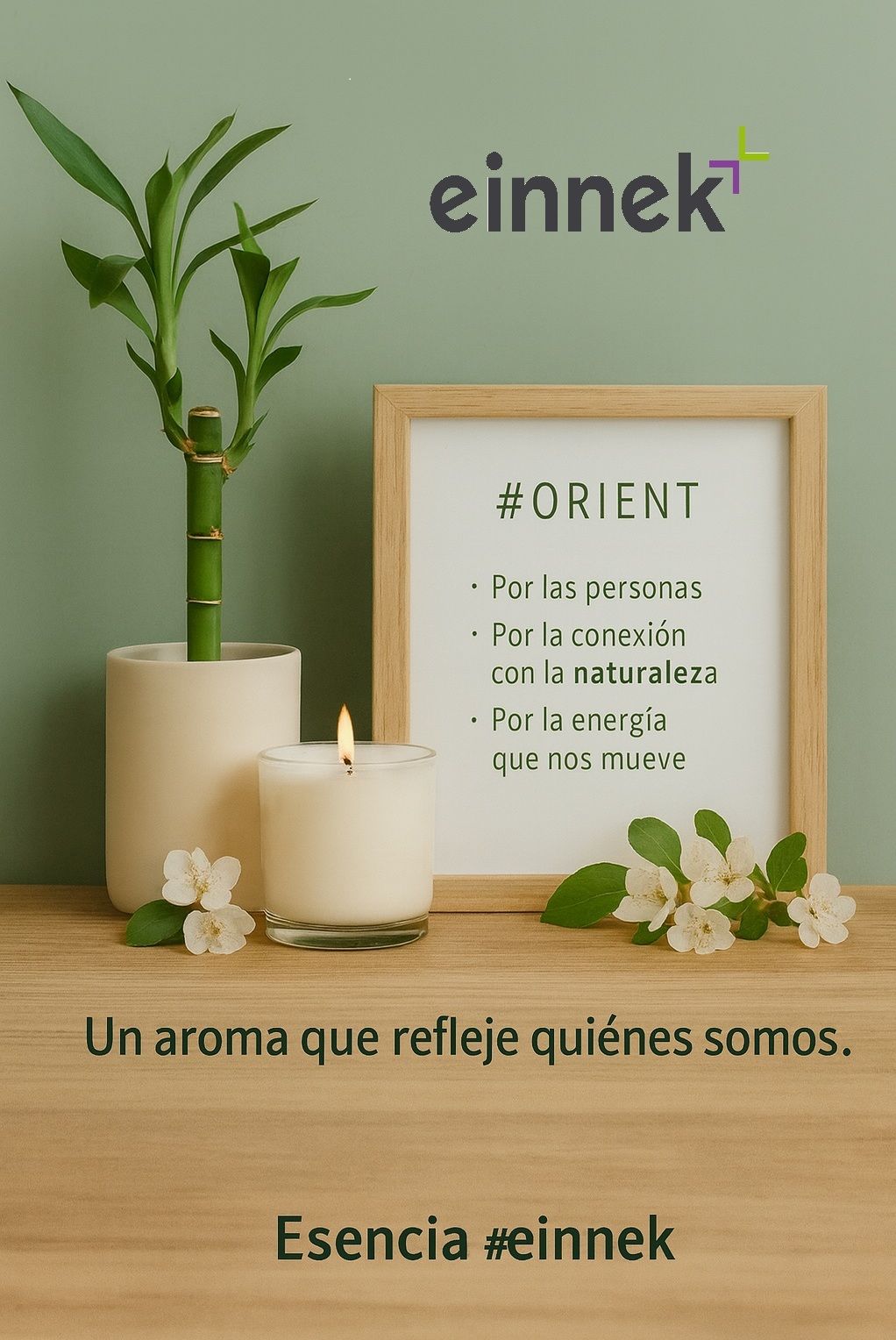 Creemos que la innovación no solo se ve, se siente… y se huele. Por eso hemos querido darle fragancia a nuestra marca, un aroma que refleje quiénes somos. Esencia einnek Gracias a la colaboración con Ambibox y la asesoría experta de Jose Antonio Solar Zabala, nace nuestra fragancia ORIENT, creada para llenar nuestros espacios con equilibrio, serenidad y energía positiva. Un aroma que inspira concentración, transmite calma y conecta a las personas. Un olor que no solo ambienta , sino que habla de nuestra forma de ser y trabajar. El bambú , presente en nuestra sala INSPIRA , nos recuerda que lo esencial no siempre se ve, tambien se siente…...Y hoy, esa esencia también se respira. Símbolo natural de crecimiento y resiliencia.